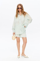 Комплект: джемпер+брюки. Комплект выполнен из трикотажного полотна. Джемпер прямого силуэта, покроя "oversize" длиной до линии бедер. Спереди застежка на молнию. Воротник-стойка. Плечевой шов удлинен. Рукав рубашечного покроя, одношовный, расширенный и присборенный к низу. Низ рукава на притачной манжете. Низ джемпера на эластичной тесьме с фиксаторами. Джемпер декорирован вышивкой по переду. Брюки прямого силуэта, длиной в пол, на притачном поясе с эластичной тесьмой. Спереди боковые карманы с фигурным входом, петли в поясе, в которые втянут шнур из основной ткани, коленные вытачки, складки. Сзади справа накладной карман.