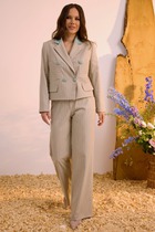 Костюм классический женский выполнен из мягкой костюмной ткани, состоит из жакета и брюк. Жакет полуприлегающего силуэта  с отложным английским воротником, на полочке жакета расположены таллиевые выточки и прорезные карманы с клапаном. Рукав втачной длинный. Жакет на полной подкладке. Брюки классического кроя средней посадки с небольшим расширением от колена. В  боковых швах брюк расположены функциональные карманы. пояс притачной с резинкой, застежка молния на гульфике.