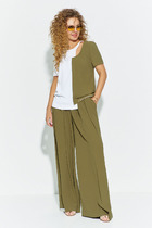 Костюм женский выполнен из эластичного трикотажного полотна в стиле Оверсайз. Костюм состоит из кюлот и джемпера. Кюлоты на притачном поясе с эластичной тесьмой по заду, по переду брюк расположены бантовые складки и карманы в боковых швах. Застежка молния и петля - пуговица на поясе. Джемпер свободного силуэта с декоративным асимметричным элементом "кулиса" на полочке и функциональной молнией в горловине. Рукав приспущенный, с манжетой по низу. Спинка разрезная. Изделие подойдет на рост 170 см