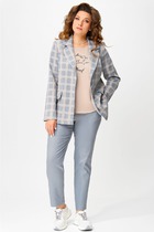 Костюм женский 2хпредметный состоит из жакета и брюк, Жакет полуприлегающего силуэта выполнен из костюмной ткани, по полочке жакета расположена накладная деталь с функциональным прорезным карманом "рамка", и декоративные фальш-карманы в области груди. Рукав втачной длинный. горловина обработана плоско лежащим воротником -стойкой. Застежка жакета - потайная (супатная) на петли-пуговицы. Жакет на полной подкладке.Брюки классического кроя, прямые от бедра, с высокой посадкой. Пояс в брюках втачной с резинкой, застежка молния на гульфике и петля- пуговица.