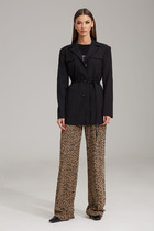 Холодный осенний сезон вовсе не повод отказываться от красивых костюмов, тем более, что среди трендовых моделей есть очень комфортные, уютные и тёплые. Жаккардовое смесовое трикотажное полотно в стилизованную гусиную лапку в модном цветовом решении. Жакет без подкладки, свободного силуэта со слегка заниженной линии плеча. Застёжка центральная на петли и пуговицы, воротник - классический английский. По низу рукавов и жакета - контрастный довяз. Юбка прямая, на притачном поясе, с боковыми наклонными карманами на передней половинке и отрезной кокеткой, средним швом и накладными карманами на задней. Застёжка в среднем шве спинки, пояс с эластичными вставками. Длина жакета около 52 см. Длина рукава около 60 см. Длина юбки около 68 см.