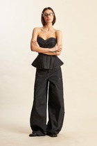 Полуприлегающий удлинённый жилет и прямые брюки отлично подчёркивают фигуру, а слегка расширенные плечи жилета придают дополнительную изюминку образу.