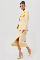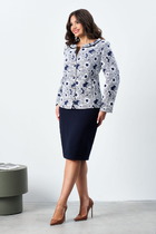 Юбка классическая джинсовая, слегка расширенная к низу, с 5-ю карманами. Пояс притачной контрастного цвета. По боковому шву контрастный лампас, подзоры передних карманов также из контрастного джинса. Переднее полотнище юбки с центральным швом, разрезом и застёжкой. Спинка с центральным швом, отрезной кокеткой и накладными карманами.