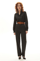 Джемпер из трикотажа. Это одна из базовых вещей осенне-зимнего сезона. Он тёплый, удобный и невероятно комфортный. К тому же, настолько универсален, что его можно стилизовать абсолютно разными способами. Свободный покрой с заниженной линией плеча, рукав рубашечного покроя на отрезной манжете, воротник классический, по центру полочки частичная застёжка-молния. По низу джемпера - отрезной пояс. Юбка коническая, длины миди на притачном поясе, частично эластичном в области спинки. По боковым швам - наклонные карманы, застёжка по центру заднего полотнища на тесьму-молнию и петлю пуговицу. Пояс в комплект не вхолит. Длина юбки около 72 см