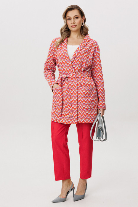 Стильный комплект, в котором выразительная фактура трикотажа сочетается с практичностью денима. Кардиган выполнен из мягкого трикотажного полотна с декоративным узором, который добавляет образу динамику и подчёркивает его fashion-характер. Прямой силуэт и аккуратная линия плеч делают модель универсальной и легко адаптируемой под разные стилистические сценарии.
