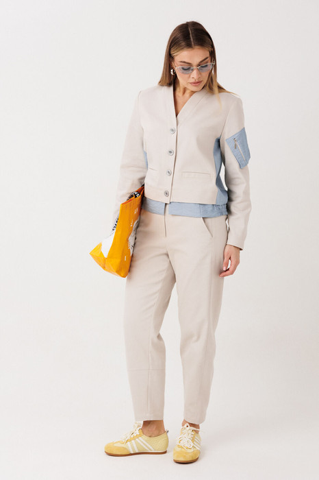 Невероятный брючный комплект в стиле street-casual. Его выделяет полная свобода, удобство и комфорт в тандеме с неповторимостью, ненавязчиво подчеркивающей индивидуальность. Определенную эффектность образу придает использование разнофактурного полотна гармонично сочетающегося цвета.