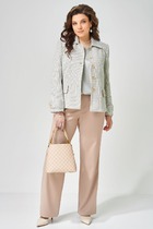 Жилет на пуговицах создает аккуратный, собранный силуэт, а свободные широкие брюки дарят ощущение легкости и свободы движений. Мягкий голубой оттенок и деликатная вертикальная полоска делают образ свежим, женственным и визуально вытягивают фигуру.