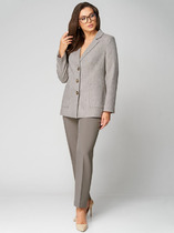 Брюки - прямого силуэта, в боковом шве - карманы, пояс на резинке, низ брюк обработан швом в подгибку, с закрытым срезом. В боковых швах лампасы из отделочной ткани."