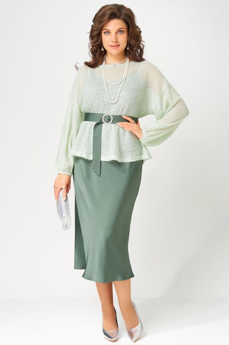 ""Эдита"" — элегантный образ для волшебной ночи. Сатиновое платье струится мягким блеском, а трикотажная накидка из махера с шерстью добавляет тепла и фактурности. Идеальный наряд для встречи Нового года и других торжеств, когда хочется сиять и чувствовать себя особенно.