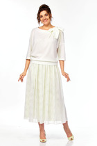 Женский костюм полуприлегающего силуэта выполнен из шелк- сатина средней плотности. Блуза с ассиметричной линией низа дополнена французским кружевом, которое держит форму; в боковых швах разрезы; по спинке застежка в виде "капельки" с петлей и пуговицей. Юбка с завышенной линией талии на подкладке; застежка на молнию; по спинке шлица. Платье полностью соответствует заявленному размеру. Пожалуйста, пользуйтесь таблицей замеров готового изделия, чтобы подобрать идеальный размер.