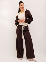 Стильный комплект создан для активных женщин, которые  не только ценят комфорт но и стремятся выглядеть эффектно в любой ситуации. Этот костюм идеально подходит для занятий спортом, так же для повседневной носки. Костюм выполнен из высококачественной плащёвки. Бомбер данной модели укороченный на молнии с кокеткой по спинке и переду.Декоративная планка и полоска на капюшоне выполнена из отделочной ткани. Рукав двушовный, спущенный,с кантом из декоративной ткани,низ бомбера и рукава- на широкой резинке. Брюки прямые с планками из отделочной ткани и кантами. Верх брюк выполнен на резинке.В капюшон и пояс брюк вставлен функциональный шнур.