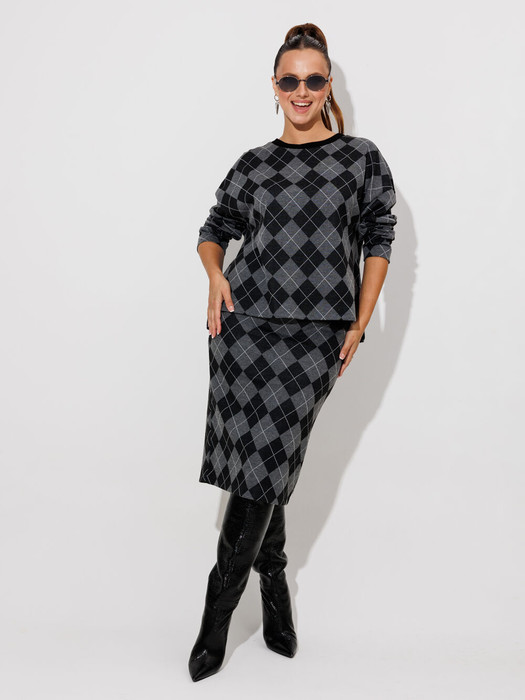 Совместные закупки Екатеринбург Женская одежда Костюмы, комплекты — Костюм Galean Style 990 чёрный с серым ромбы