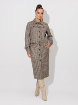 Юбка прямая, на поясе,  спереди застёгивается на пуговицы.