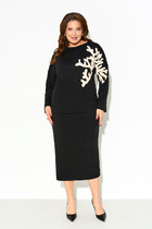 Джемпер прямого силуэта с воротником поло из плотной хлопковой ткани "двухнитка". Рукав втачной одношовный. По низу изделия, по низу рукава и по воротнику проложена отделочная строчка. Брюки расширеные книзу на притачном поясе из джинсовой хлопковой ткани. По поясу настрочены шлевки. По передним и задним частям брюк вытачки. На задних частях брюк настрочены карманы. Карманы, вытачки, пояс, низ брюк отделаны отделочной строчкой. Длина джемпера- 66 см, длина рукава - 60 см. Длина брюк с учетом пояса - 109 см