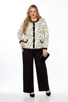 Современный женственный комплект, состоит из кардигана и прямых брюк. Кардиган имеет прямой силуэт и длинные рукава с мажетами (из ткани кошкорсе). Вырез горловины Y-образной формы с притачной планкой. Застежка по центру переда на петли и пуговицы. На переде удобные карманы. По планкам, по карманам, проложена отделочная строчка. Брюки длинные, прямые. По передним половинкам функциональные карманы. Пояс из ткани кошкорсе, с резинкой и шнуром внутри.