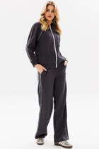 Современный комфортный костюм, состоит из брюк карго и укороченного бомбера. Отлично подойдёт для дома, прогулок, путешествий и отдыха. Пошит из теплой, комфортной ткани. Бомбер прямого силуэта, с застежкой молнией из металла. Горловина, манжеты рукавов выполнены из ткани-компаньона кошкорсе. На левом переде вышивка-логотип в цвет ткани. Бомбер с кулисой по низу с резинкой внутри и фиксаторами на боковых швах. Брюки расширенные к низу, с возможностью заузить и зафиксировать ширину внизу (низ имеет кулиску с резинкой и фиксатором). На передних половинках брюк удобные накладные карманы, складки в районе линии колен. Пояс из ткани компаньена кошкорсе со шнуром и резинкой внутри.