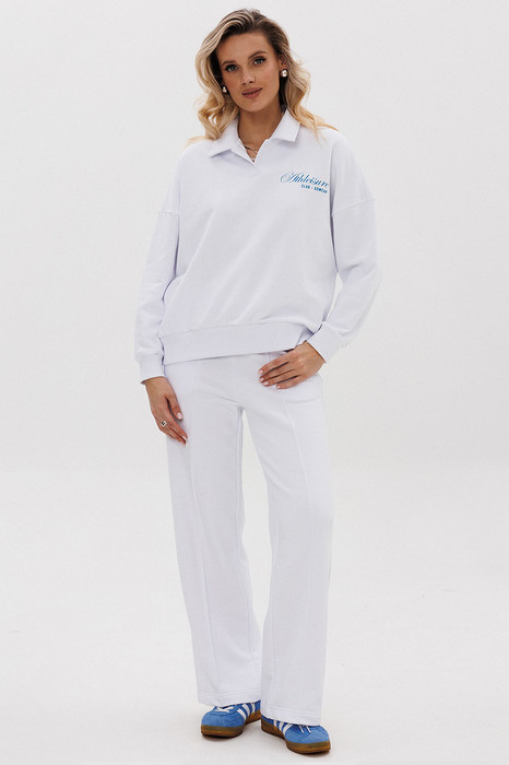 Для очаровательного образа не хватает воротничка! Воротник — маленькая деталь, которая «смягчает» и делает нежным весь аутфит. Брюки со стрелками добавят образу строгости и деловитости, что позволит носить костюм как на прогулки, так и в офис.