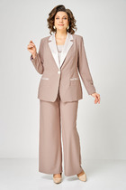 Блузка с центральной застежкой на петли и пуговицы, втачным воротником с отрезной стойкой. По переду нагрудные вытачки . Спинка цельная. Рукав втачной, короткий, с отрезной манжетой. Брюки- с цельнокроенным поясом. Пояс присборен на резинку, с кулисой и шнуром- завязкой. В боковых швах расположены карманы. Ниже линии бедер расположены накладные карманы с клапанами.