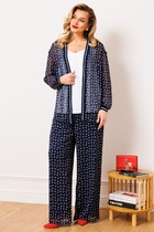 Состав: Блуза- ПЭ-100%; Топ- Вискоза-100%; Брюки- Вискоза-100%;