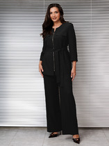 Жакет с центральной двубортной застежкой на петли и пуговицы, без воротника, с отложными лацканами. По переду с рельефами, выходящими из проймы до низа. По спинке со средним швом и рельефами, выходящими из проймы до низа. Жакет со сьемным поясом. На уровне линии талии расположены шлевки для пояса. Юбка без пояса, верхний срез обработан обтачками. Заднее полотнище со средним швом, застежкой на потайную молнию в среднем шве. Юбка силуэт- годе,с рельефными швами по переднему и заднему полотнищу.
