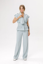 Брюки палаццо, по талии на резинке, без застежки, в боковых швах карманы.