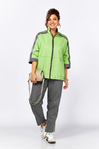 Джемпер свободного силуэта на резинке по низу и рукаве. Вырез горловины округлый, рукав цельнокроеный, застежка по спинке на петлю и пуговицу. Изделие на подкладке.