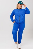 Костюм женский полуприлегающего силуэта выполнен из футера двухнитки класса пенье и состоит из джемпера и брюк. Джемпер с фактурной резинкой по линии талии; вырез горловины округлой формы; рукава со спущенной линией плеча и внутренней декоративной лентой (стильная деталь с изысканным акцентом), что позволяет регулировать высоту рукава; по спинке функциональная молния. Брюки свободного кроя прямые к низу на поясе-резинке с функциональными карманами в боковых швах.