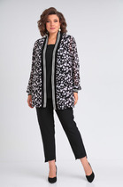 Состав: Жакет- Вискоза-62%; ПЭ-35%; Спандекс-3%; Брюки- Вискоза-62%; ПЭ-35%; Спандекс-3%; Топ- Вискоза-20%; ПЭ-80%;