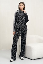 Костюм женский нарядно-повседневный, состоит из джемпера и юбки, выполнен из трикотажного полотна. Джемпер прямого силуэта. Перед цельнокроеный, дополнен дизайнерской вышивкой. Спинка с застежкой на декоративную тесьму-молнию. Горловина округлой формы. Рукава спущенные. Юбка заужена к низу. Пояс цельнокроеный на эластичной тесьме. По переду обработан ассиметричный рельеф, в котором имеется шлица. Юбка на подкладке.