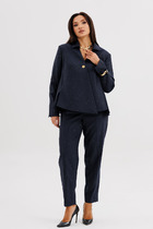Костюм женский состоящий из жакета и юбки. Жакет женский из трикотажной ткани прямого силуэта на подкладке. На деталях переда настрочены накладные карманы округлой формы застегивающиеся на декоративные кнопки. Спинка прямая. Рукав двухшовный с имитацией шлицы. Горловина округлой формы. Жакет застегивается на декоративные кнопки.