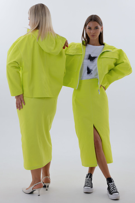 Kivvi Wear представляет идеальный дуэт, где уличный шик встречается с безупречной элегантностью. Джинсовый костюм — это гармоничный ансамбль из укороченной ветровки и юбки-карандаш, созданный для тех, кто ценит смелые контрасты и многослойность.