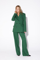 Горловина оформлена стойкой и рубашечным воротником. Застежка вертикальная на планках петли-пуговицы. Длина блузы по спинке 77 см, длина блузы переда 73 см. Рукав цельнокроенный, на спинке со складками, завершен зауженной манжетой высотой 11 см, которая может иметь положение манжет с отворотом. Длина рукава от боковой плечевой точки до манжеты 51 см.