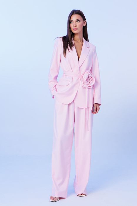 Стильный гармоничный комплект, состоящий из жакета и свободных брюк в стиле палаццо.