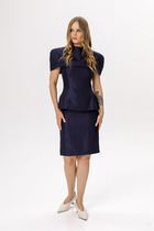 Блуза (рубашка) женская из тканого гладкокрашеного полотна «штапель», свободного покроя, с короткими втачными рукавами, стояче-отложным воротником, центральной бортовой застежкой на обметанные петли и пуговицы. В боковых швах разрезы.