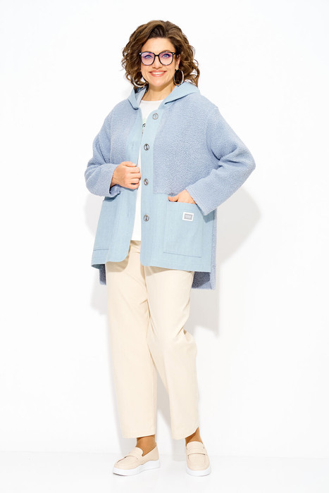 Женский джинсовый жакет- ветровка больших размеров с капюшоном — это стильный и универсальный элемент гардероба, который идеально подходит для создания модных образов в любое время года. Комбинированный джинсовый жакет-ветровка с капюшоном, выполнен из 100% хлопка с добавлением трикотажа с меховым эффектом «Тэдди». Модель свободного силуэта, с длинным рукавом на спущенном плече. Застежка центральная, на петли и пуговицы на декоративную планку. По полочке расположены накладные карманы. Удобный объемный капюшон защитит вас от ветра и холода в непогоду.