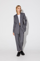 Блуза прямого силуэта. Рукав втачной, собран на пату с пуговицей. Спинка со средним швом и потайной молнией. По боковым швам разрезы. Имеется съемный пояс из основной ткани.