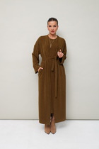 Юбка на притачном поясе с резинкой. Переднее полотнище с наклонными карманами к боковым швам и складками от пояса. Заднее полотнище с потайной молнией в среднем шве и складками от пояса. Юбка на подкладке.