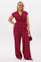 Комплект 2-ка, состоящий из укороченного бомбера и брюк. Бомбер с застёжкой на молнию и объёмными рукавами. Линия талии на кулисе и завязке из основной ткани.Брюки широкого объема, прямого силуэта. На передних половинках брюк заутюжены стрелки, переходящие в складки по линии талии. На задних половинках также заутюжены стрелки. В боковых швах расположены карманы. Застежка-гульфик. Пояс отрезной, притачной. В задней части пояса вставлена эластичная тесьма (резинка). На пояс настрочены шлевки. Выступающая часть пояса застегивается на петлю и крючок.