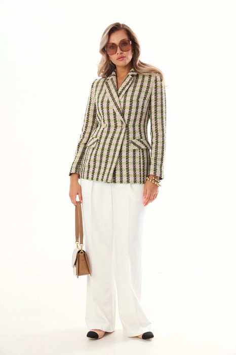 Состав: Жакет- ПЭ-68%; Хлопок-32%; Брюки- Вискоза-33%; ПЭ-64%; Эластан-3%;