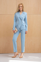 Комплект 2ка, состоящий из жакета и юбки. Жакет из экокожи на вискозе с короткими рукавами, без подкладки. Застёжка на пуговицы по центру. По переду имитация карманов с клапанами. В комплекте идёт пояс с пряжкой. Юбка-карандаш из экокожи длины ниже колена, на подкладке. По переду юбка расположена застёжка на пуговицы. По бокам карманы.