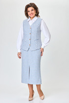 Комплект 2ка, состоящий из блузки и брюк. Блузка прямого силуэта с оригинальным принтом из лёгкой ткани с атласным мягким блеском. Воротник рубашечного типа, застежка на прорезные петли и пуговицы. В нижней части рукава заложены складки, манжета на двух пуговицах. Зауженные брюки из экокожи. Пояс на эластичной тесьме и втянутым шнурком. Вход в карман фигурный, наклонный к боковому шву.