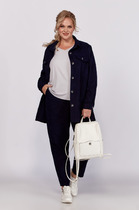 Комплект 2-ка, состоящий из рубашки и брюк. Брюки широкого объема, прямого силуэта. На передних половинках брюк заутюжены стрелки, переходящие в складки по линии талии. На задних половинках также заутюжены стрелки. В боковых швах расположены карманы. Застежка-гульфик. Пояс отрезной, притачной. В задней части пояса вставлена эластичная тесьма (резинка). На пояс настрочены шлевки. Выступающая часть пояса застегивается на петлю и крючок. Рубашка-бомбер из лёгкой льняной ткани с застёжкой на петли-пуговицы. Низ рубашки и манжеты выполнены из довязов. Длина по спинке 60-63 см.