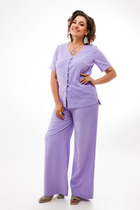 Брюки длинные, широкие, расклешенные книзу, с карманами в боковых швах. На уровне колена выполнен подрез. Пояс притачной, на резинке.