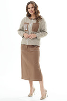 Стильный комплект из бомбера и юбки. Бомбер свободного кроя, на подкладке, с центральной застежкой на металлическую молнию. Рукав слегка спущен. Бомбер выполнен из мягкой костюмной ткани с принтом ""пье де пуль". Для придания объема по низу бомбер дополнен эластичной тесьмой с фиксаторами. В рельефных швах расположены функциональные карманы. Юбка миди прямого кроя с притачным поясом, дополненным эластичной тесьмой. Выполнена из плотной хлопковой ткани. Спереди застежка гульфик на молнию и пуговицу. Юбка дополнена удобными боковыми карманами, а так же накладными карманами сзади. Для удобства при ходьбе в боковых швах расположены разрезы. Длина бомбера от плечевого шва 62см. Длина рукава 60см. Длина юбки 83см.
