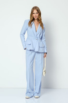 Элегантный костюм из легкого жакета и юбки. Жакет полуприлегающего силуэта с центральной застежкой на пришивные пуговицы. Выполнен из комфортной поливискозной ткани. Горловина округлой формы Рукав втачной, длина выше локтя. Юбка А-силуэта на хлопковой подкладке, по талии дополнена эластичной тесьмой. Выполнена из хлопоковой ткани. Длина жакета от плечевого шва 53 см. Длина рукава 30см. Длина юбки 95см.