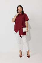 Элегантный комплект, состоящий из блузы и юбки, выполненных из мягкой костюмной ткани серого цвета в тонкую полоску. Блуза полуприлегающего силуэта с втачным рукавом. По спинке застежка на молнию. Блуза дополнена декоративным несъёмным украшением, выполненным из основной ткани. Юбка классического кроя на подкладке. По спинке застежка на потайную молнию. Длина блузы от плечевого шва 65 см. Длина рукава 55 см. Длина юбки 70 см.