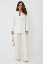 Элегантный и безумно красивый костюм из жакета и брюк. Выполнен из красивой гладкой костюмной ткани с легким жемчужным отблеском. Жакет прямого свободного кроя с красивыми рельефами, на подкладке, с центральной застежкой на пуговицы. Брюки классического прямого кроя с притачным поясом, дополненным эластичной тесьмой. Дополнены удобными боковыми и задними карманами. Застежка гульфик на молнию и пришивную пуговицу. Длина жакета от плечевого шва 73 см. Длина рукава 60см. Длина брюк 107 см