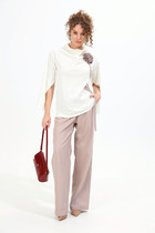 Универсальный костюм, который выглядит дорого и современно, но при этом дарит комфорт и лёгкость. Его можно носить как комплект или по отдельности: жакет с асимметричной застёжкой и акцентными пуговицами легко сочетается с джинсами, а брюки свободного кроя идеально смотрятся с блузой или футболкой.