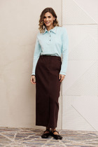 Комплект женский полуприлегающего силуэта. Жакет без подкладки с центральной застежкой на 4 петли и пуговицы. По правой полочке накладной карман и декоративная печать. Спинка с талевыми вытачками. Рукав втачной одношовный. Юбка на подкладке с застежкой в среднем шве заднего полотнища. По переду имитация запаха. Верхний срез обработан обтачкой. Длина жакета 58 см, длина рукава 22 см, длина юбки 67 см