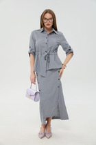 Юбка, длиной ниже колена, зауженная к низу. Застёжка в левом боковом шве на потайную молнию и пуговицу. На переднем и заднем полотнище юбки обработаны талевые вытачки, которые обеспечивают точную посадку по фигуре. Юбка на поясе, сзади частично на резинке для удобства и комфортной посадки.В среднем шве юбки обработана шлица, которая обеспечивает свободу движений. Юбка также на подкладке.